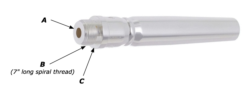 On the illustration above of a typical modular trumpet mouthpiece back bore I have labelled 2 faces A and C and the spiral thread B. This thread is typically 3/8” diameter with 6 or 7 turns giving a spiral length of 7 inches (pi x dia x no. of turns). In a perfect world, the face A will seal against a matching face machined at the end of the female thread on the bottom of the mouthpiece cup. This pushes one face of the male’s “V” against one face of the female’s “V” leaving a gap between the other faces and creating a spiral cavity. This spiral cavity is a sealed chamber, inviting resonance. However if the face C contacts the mouthpiece cup before the face A, then there is effectively a spiral diverticulum out of the mouthpiece throat and along the thread.