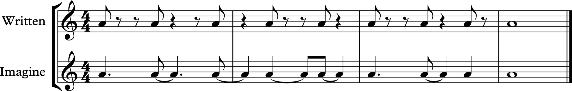 One of the drawbacks of written musical notation is that the rests are often more visually predominant than the notes. One note might be followed by many rest symbols before the next note appears. Players often attach such importance to or are so overwhelmed by the rests that they play the following note(s) out of time.